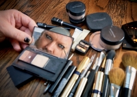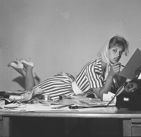 Bild från Helsingborgs-Bild´s arkiv: Lill-Babs liggande på fotograf Kjell Lindgrens skrivbord